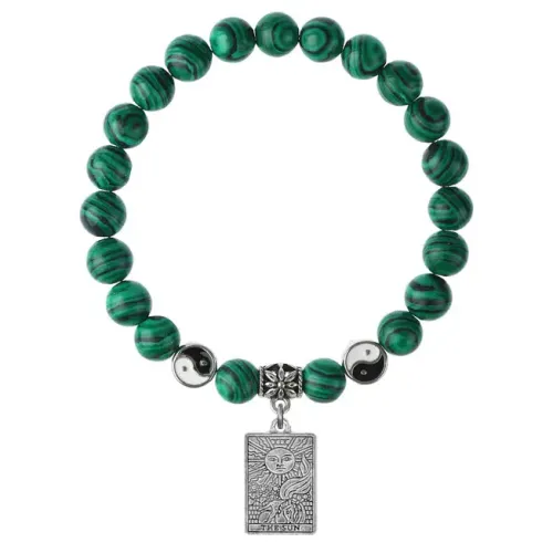 Браслет-сувенир из синтетического малахита с подвеской в виде символа карты Таро «Солнце».