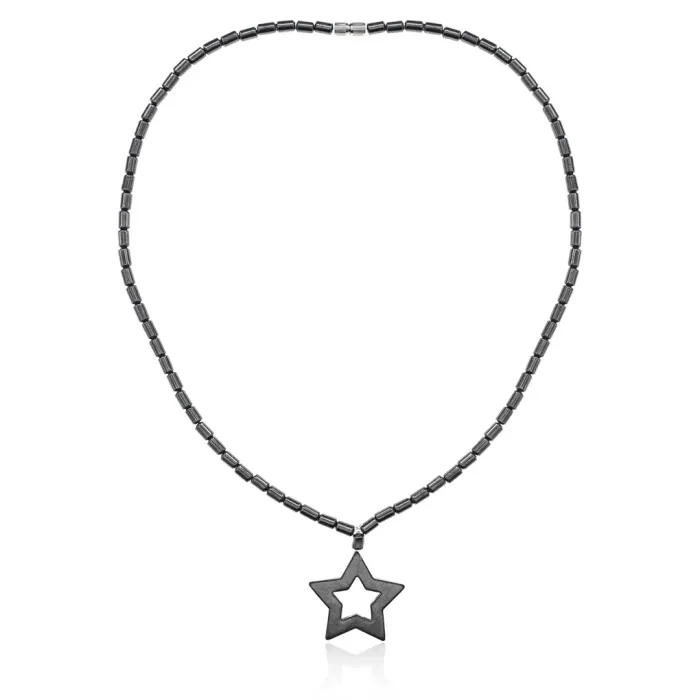 Колье из немагнитного гематита с коннектором в форме звезды.