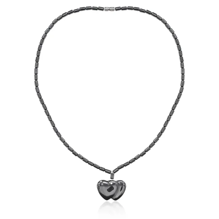 Колье из немагнитного гематита с подвеской в виде двух сердец.