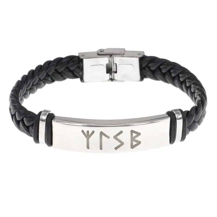 Кожаный браслет с плетёным дизайном и руническим символом.