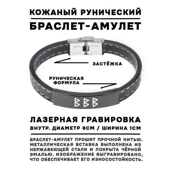 Кожаный браслет с руническим дизайном и формулой «Женское счастье».
