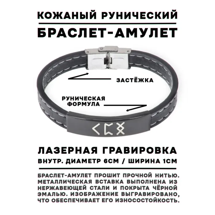 Кожаный рунический браслет Улучшение самочувствия BSKR2-072