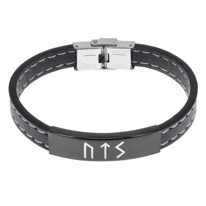 Мужской браслет из кожи и нержавеющей стали с руническим дизайном.