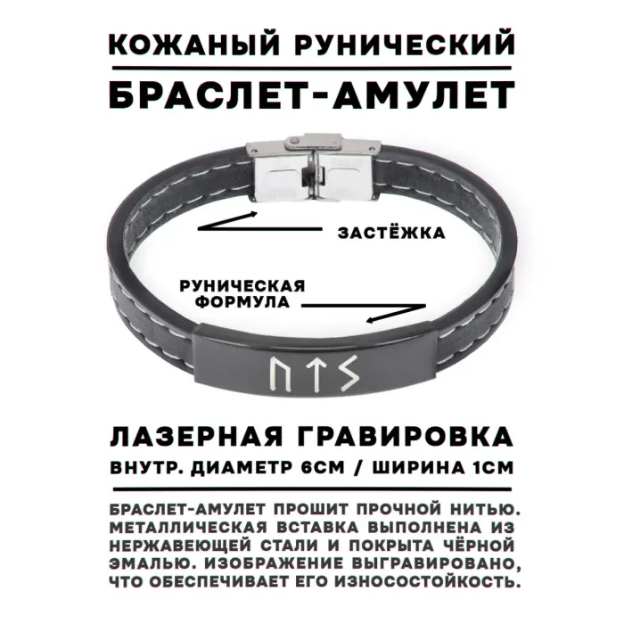Кожаный рунический браслет Энергетическая формула BSKR2-079