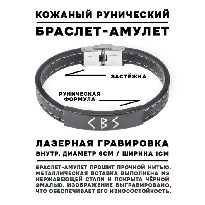 Кожаный рунический браслет с металлической фурнитурой и символами.