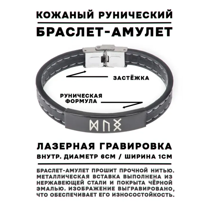 Кожаный браслет с рунической формулой «Физическая энергия».