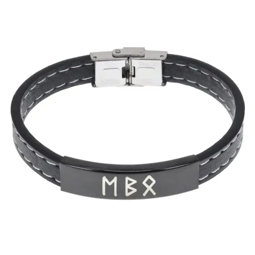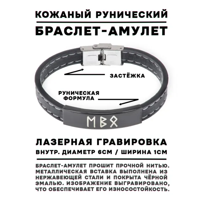 Кожаный рунический браслет с металлической фурнитурой. На изделии нанесена руническая формула.