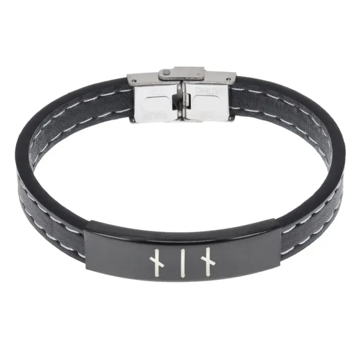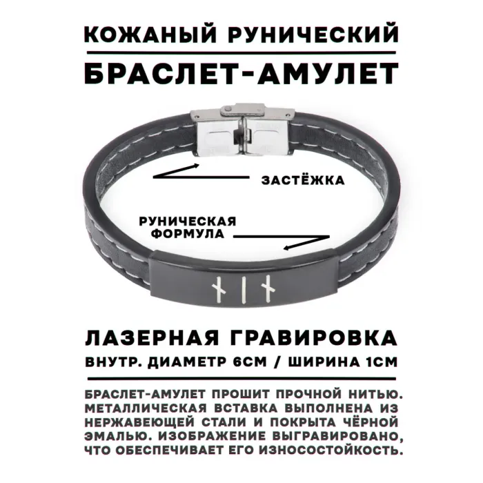 Кожаный рунический браслет с формулой самопознания. Материал: кожа, нержавеющая сталь.