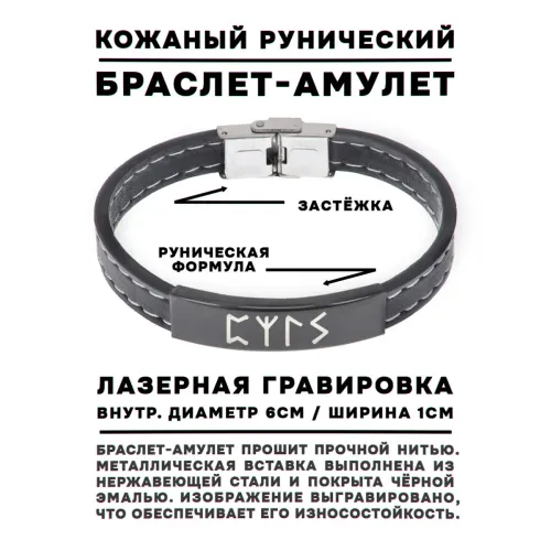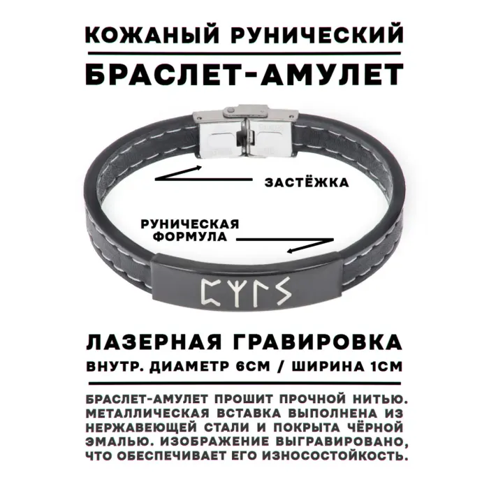 Кожаный браслет с рунической формулой «Ясновидение».