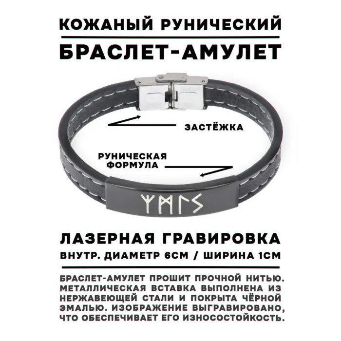 Кожаный браслет с рунической формулой из нержавеющей стали.