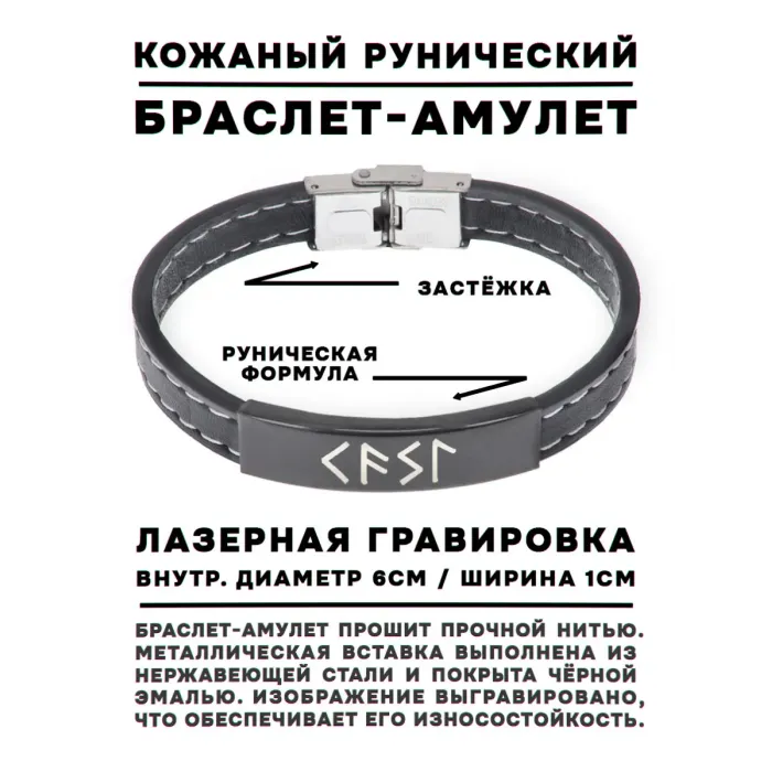 Кожаный рунический браслет Энергия творчества BSKR2-098