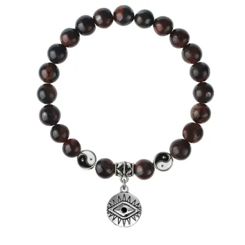 Браслет-амулет из натурального камня бычий глаз с подвеской.