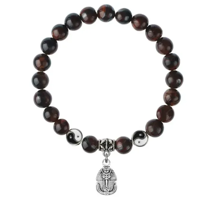 Браслет из натурального камня бычий глаз с подвеской в виде символа фараона.