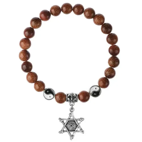 Браслет-амулет из синтетического коричневого авантюрина с подвеской в виде талисмана.