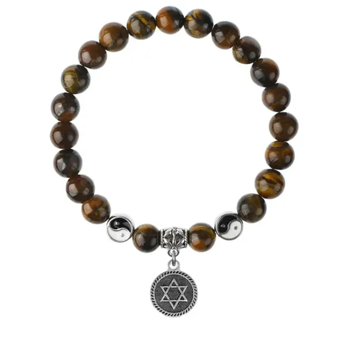 Браслет Звезда Давида (от сглаза и зла), Тигровый глаз 8мм BSPE1-13-3012