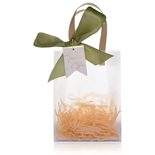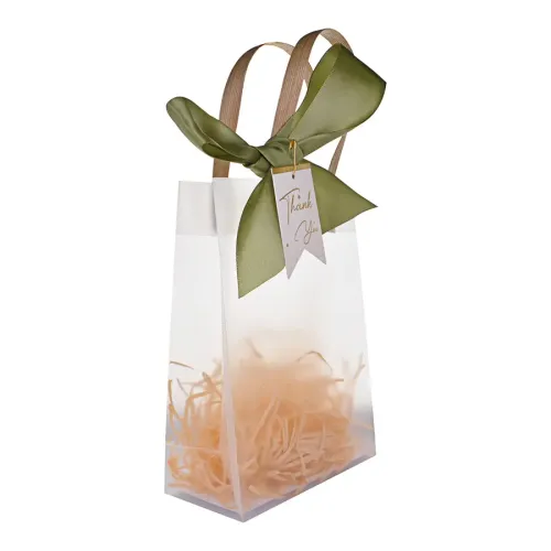 Подарочный пакет для упаковки подарков, выполнен из пластика, в комплекте с дополнительными элементами декора.