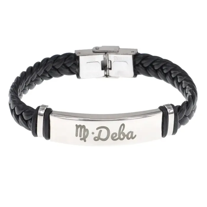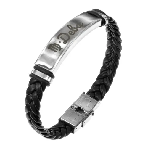 Кожаный браслет с гравировкой знака зодиака Дева.