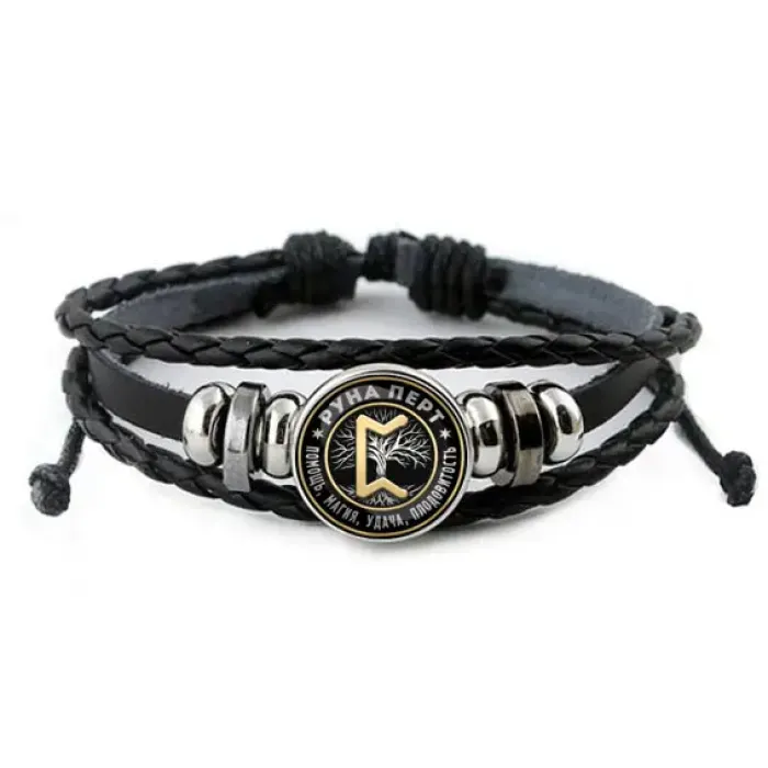 Кожаный браслет Руна Перт BSK-0349