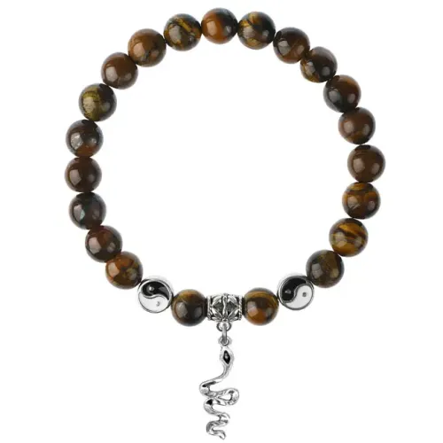 Браслет Змея (мудрость, здоровье, долголетие), Тигровый глаз 8мм BSPE1-13-3017