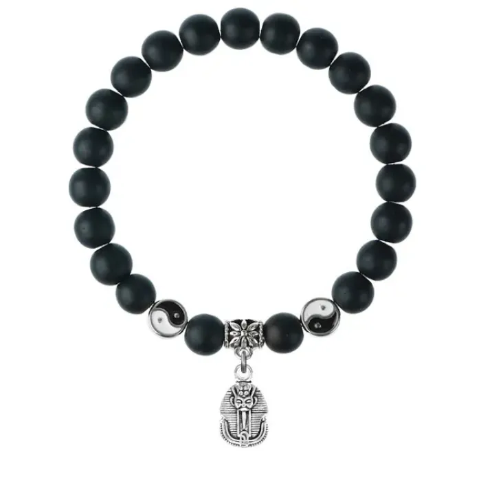 Браслет из шунгита с подвеской-талисманом в виде фараона.