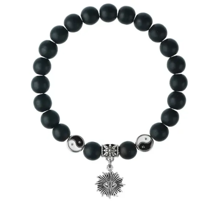 Браслет-амулет из синтетического шунгита с подвеской в виде глаза.