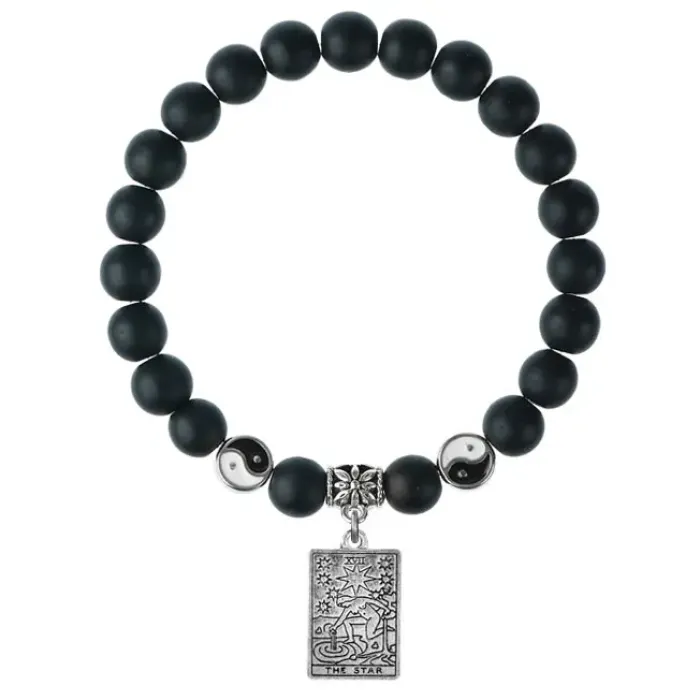 Браслет из синтетического шунгита с подвеской-талисманом в виде звезды Таро.