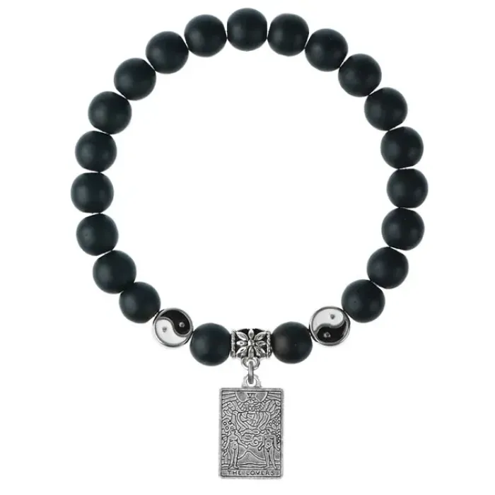 Браслет из шунгита с подвеской-талисманом в виде аркана Таро «Любовники».