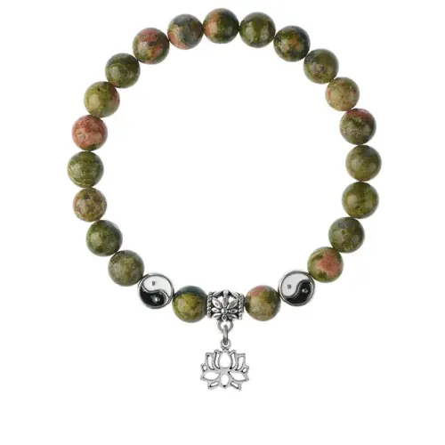 Браслет Лотос (гармония и развитие), Унакит 8мм BSPE1-15-3005