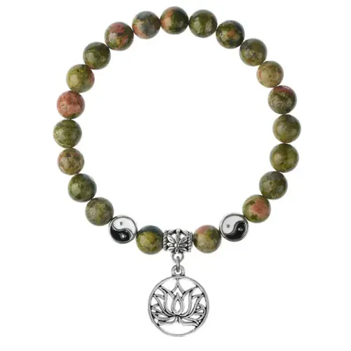 Браслет Лотос (гармония и развитие), Унакит 8мм BSPE1-15-3013