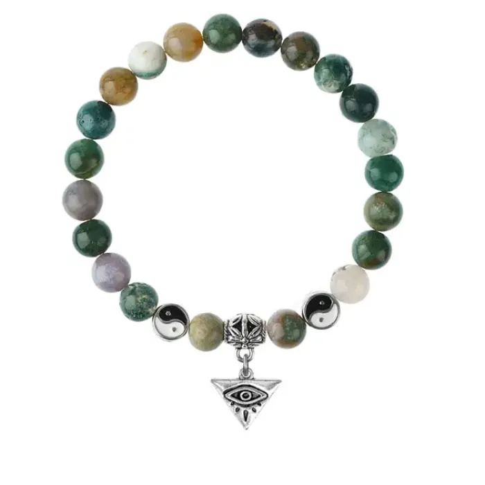 Браслет-амулет из натуральной яшмы с подвеской из бижутерного сплава.