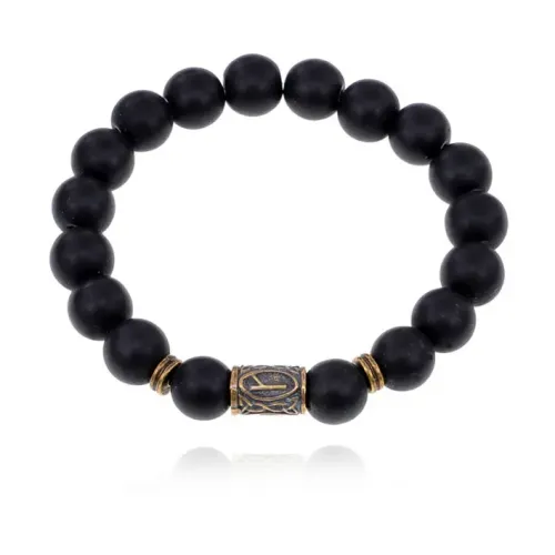 Браслет со славянской руной Алатырь и синт.камнем Шунгит 10мм BSRJ-03-24
