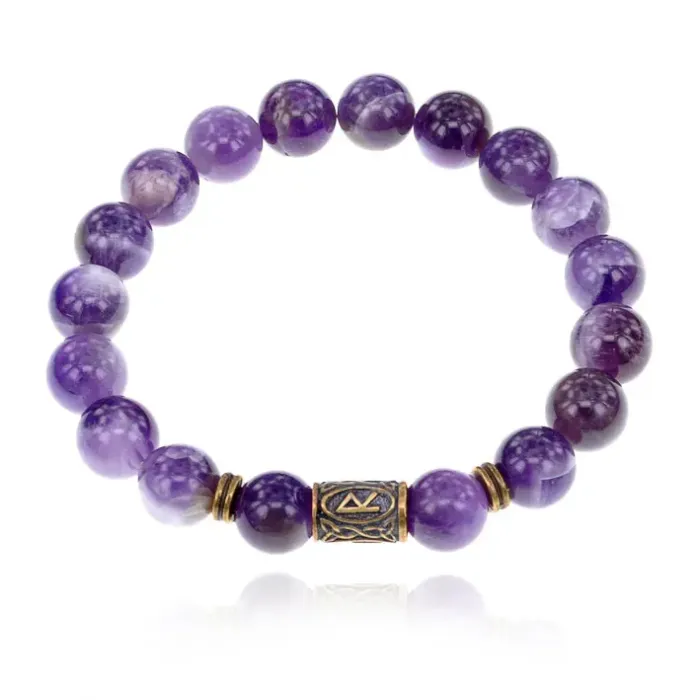 Браслет со славянской руной Радуга и нат.камнем Аметист 10мм BSRJ-04-03