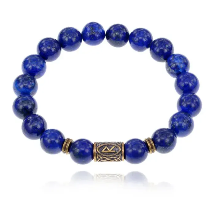 Браслет со славянской руной Радуга и нат.камнем Лазурит 10мм BSRJ-04-10