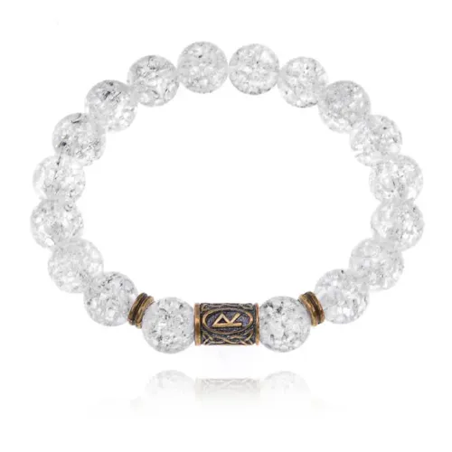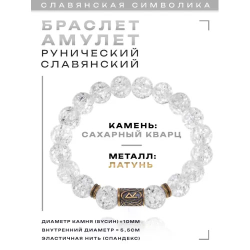 Браслет со славянской руной Радуга и синт.камнем Сахарный кварц 10мм BSRJ-04-16