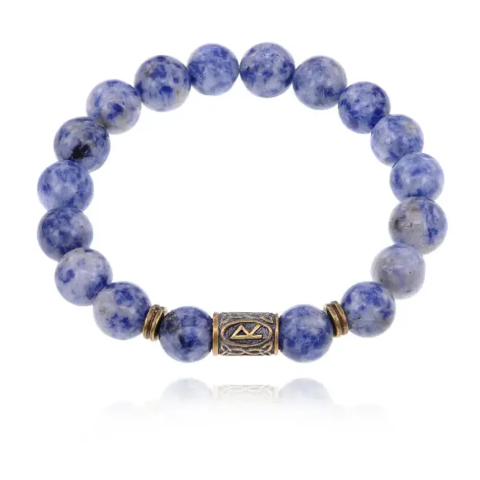 Браслет со славянской руной Радуга и нат.камнем Содалит 10мм BSRJ-04-18
