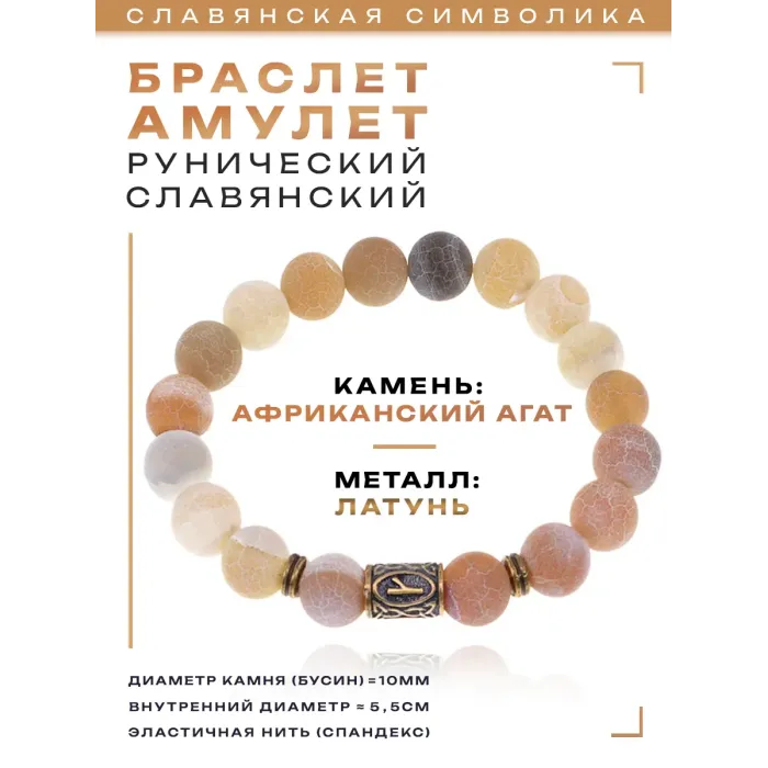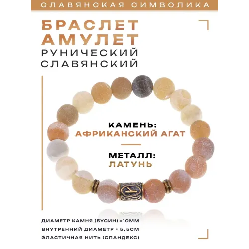 Браслет со славянской руной Крада и нат.камнем Африканский агат 10мм BSRJ-06-04