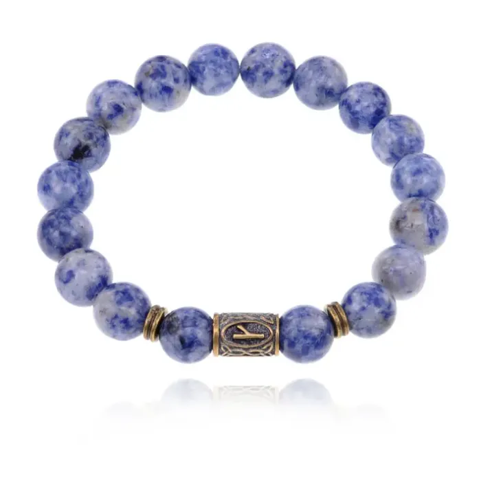 Славянский рунический стрейч-браслет с натуральным камнем содалитом и символом руны Крада.