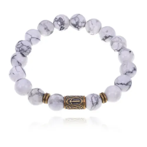 Браслет со славянской руной Треба и нат.камнем Кахолонг 10мм BSRJ-07-07