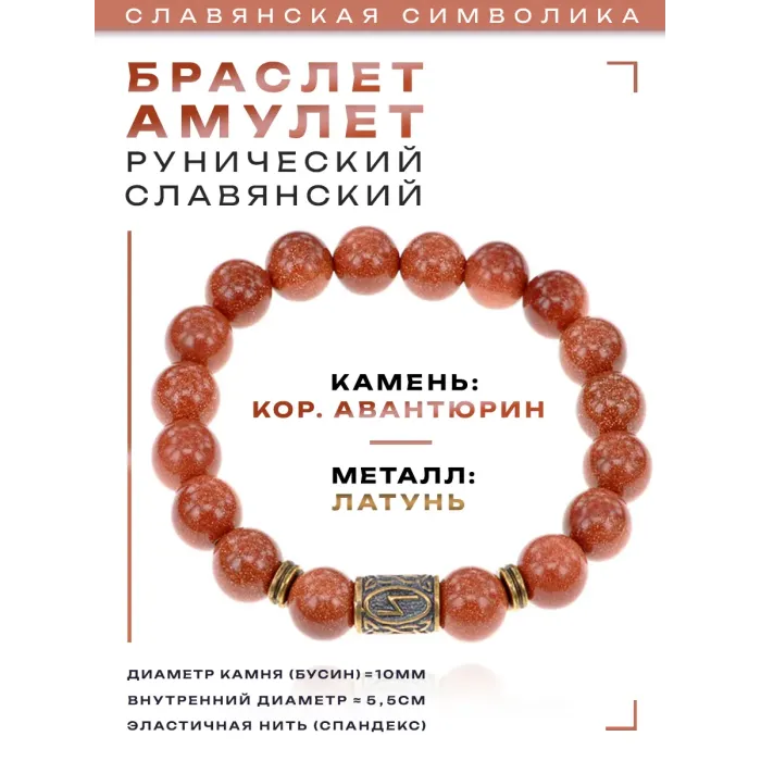 Браслет со славянской руной Сила и синт.камнем Коричневый авантюрин 10мм BSRJ-08-01