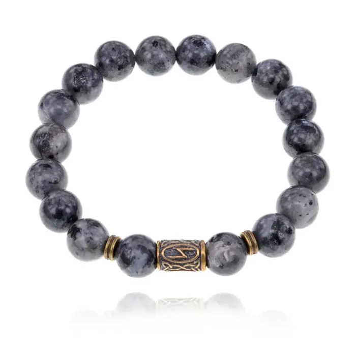 Браслет со славянской руной Сила и нат.камнем Лабрадор 10мм BSRJ-08-08