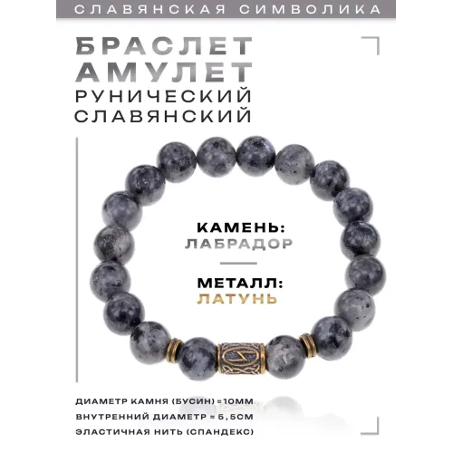 Браслет со славянской руной Сила и натуральным камнем лабрадор.