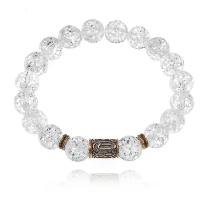 Браслет со славянской руной Ветер и синт.камнем Сахарный кварц 10мм BSRJ-09-16