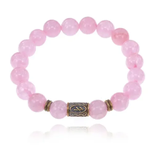 Браслет со славянской руной Берегиня и нат.камнем Розовый кварц 10мм BSRJ-10-15