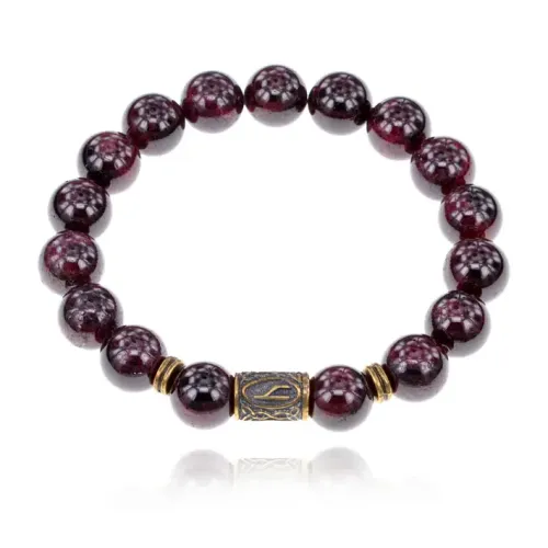 Браслет со славянской руной Уд и нат.камнем Гранат 10мм BSRJ-11-06