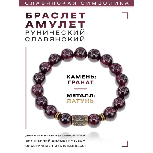 Славянский рунический стрейч-браслет с руной Уд и бусинами из натурального граната.