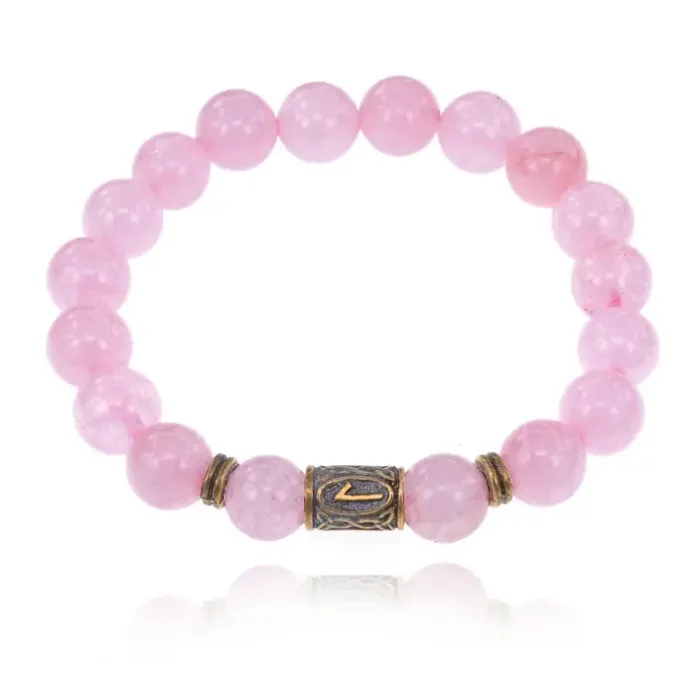 Браслет со славянской руной Леля и нат. камнем Розовый кварц 10мм BSRJ-12-15