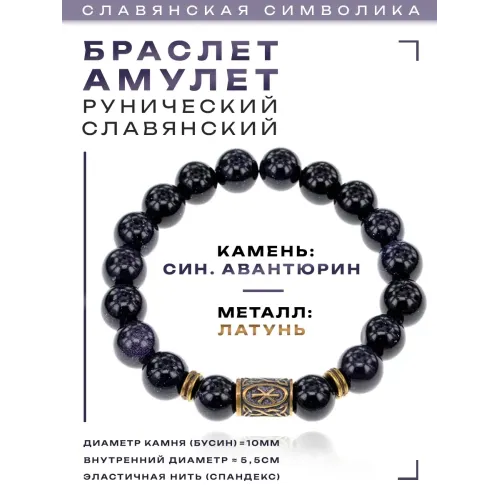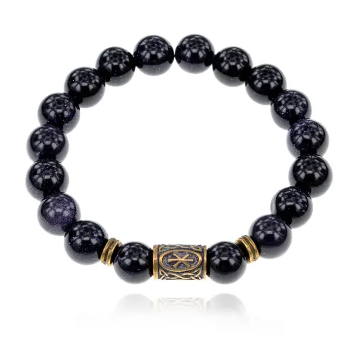 Браслет со славянской руной Рок и синт.камнем Синий авантюрин 10мм BSRJ-13-02