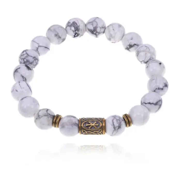 Браслет из натурального камня кахолонг со славянской руной Рок в дизайне.