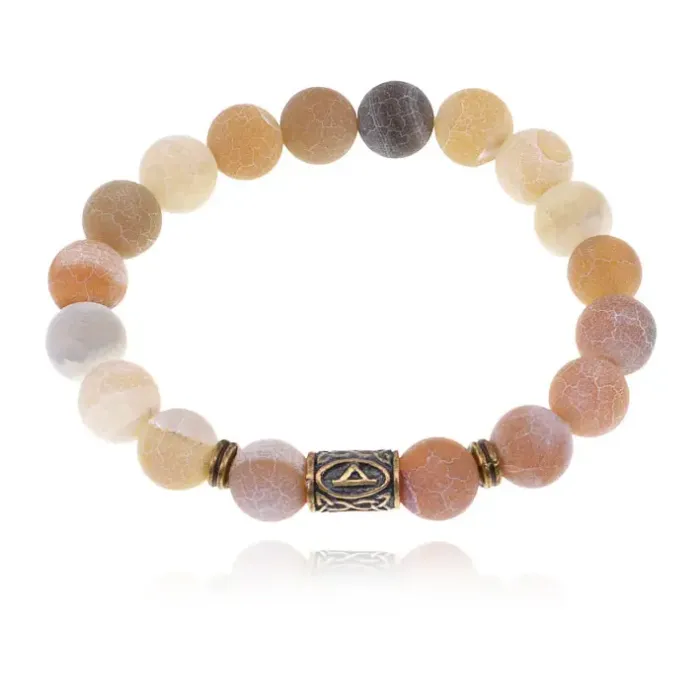 Браслет со славянской руной Даджьбог из натурального африканского агата.