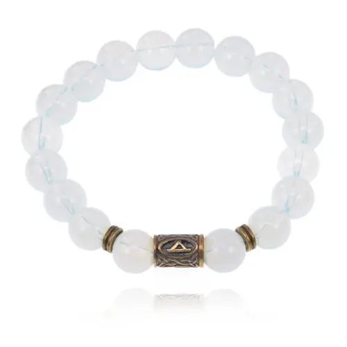 Браслет со славянской руной Даджьбог и синт.камнем Лунный камень 10мм BSRJ-15-11